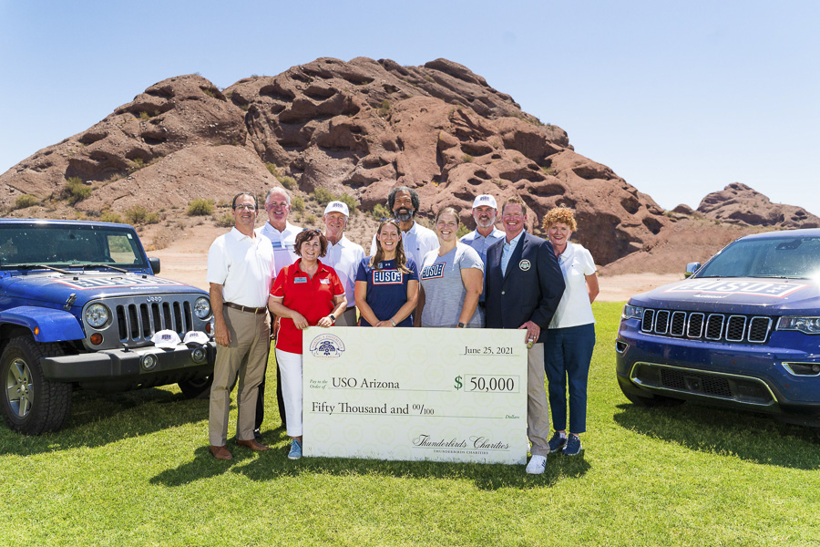 On June 25, Thunderbirds Charities presented USO Arizona a check in the amount of $50,000 to bolster the program which supports U.S. military service personnel and their families in Arizona.
