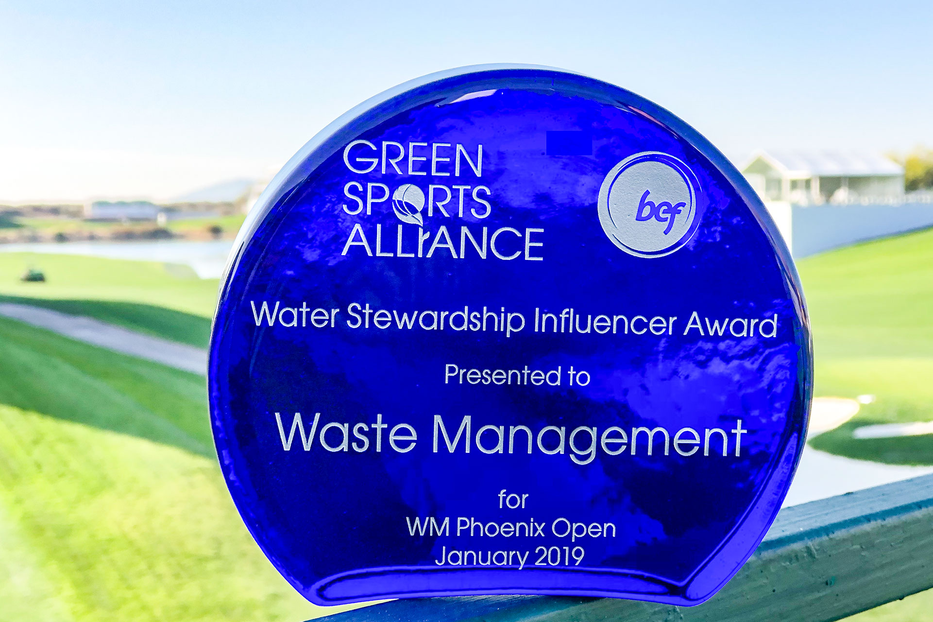 Waste Management was recently honored with the “Water Stewardship Influencer Award” presented by Green Sports Alliance and Bonneville Environmental Foundation (BEF) for the company’s awareness and conservation efforts at the Waste Management Phoenix Open.