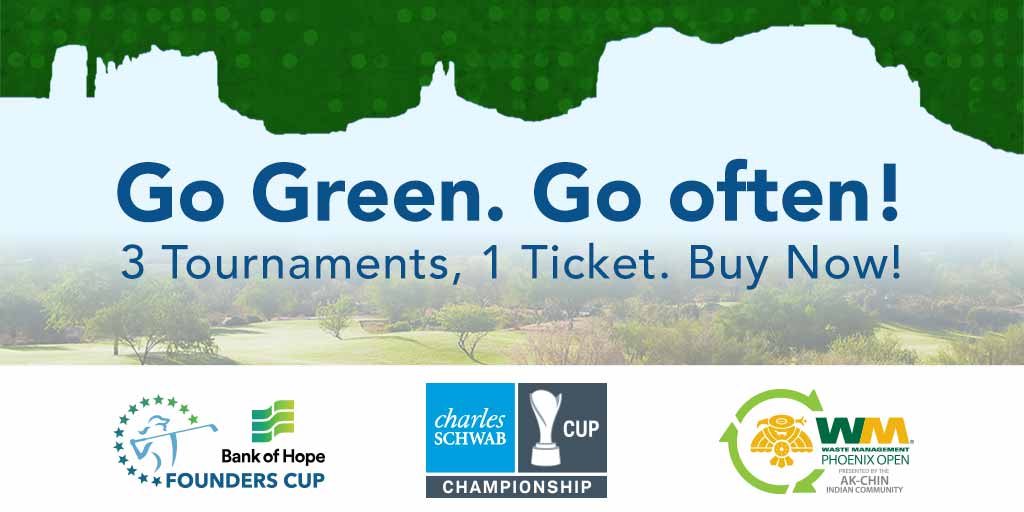 The Waste Management Phoenix Open, in partnership with the LPGA Bank of Hope Founders Cup and the Charles Schwab Cup Championship, announce the relaunch of the Go Green Go Often ticket promotion in time for Father’s Day.