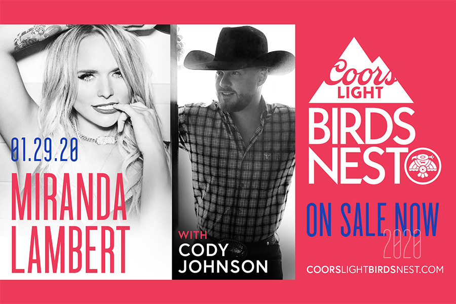 The lineup for the 2020 Coors Light Birds Nest includes Lambert and Johnson taking the stage on Wednesday, Jan. 29, while country music superstar Dierks Bentley will get the crowd going on Friday, Jan. 31. The remaining Coors Light Birds Nest lineup will be announced as more artists are confirmed.