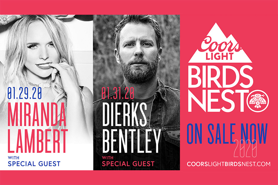 The lineup for the 2020 Coors Light Birds Nest is starting to take shape as country music superstars Dierks Bentley and Miranda Lambert have committed to perform at the popular entertainment venue at the Waste Management Phoenix Open. Tickets for the two shows are on sale now and can be purchased by visiting www.coorslightbirdsnest.com. The remaining Coors Light Birds Nest lineup will be announced as more artists are confirmed.