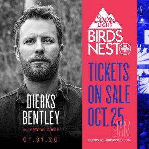 The lineup for the 2020 Coors Light Birds Nest is starting to take shape as country music superstars Dierks Bentley and Miranda Lambert have committed to perform at the popular entertainment venue at the Waste Management Phoenix Open. Tickets for the two shows are on sale now and can be purchased by visiting www.coorslightbirdsnest.com. The remaining Coors Light Birds Nest lineup will be announced as more artists are confirmed.