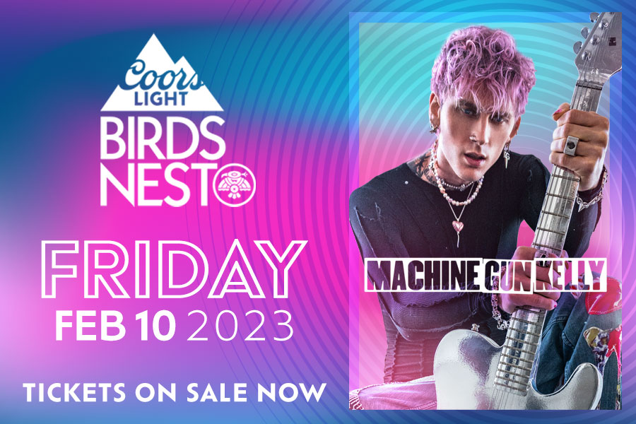 The Coors Light Birds Nest Lineup is nearly set – Jason Aldean and special guest MacKenzie Porter will take the stage on Thursday, Feb. 9; while The Chainsmokers and special guest Gryffin will close out the final night on Saturday, Feb. 11. The special guest performing with Machine Gun Kelly and Wednesday’s lineup will be announced at a later date.