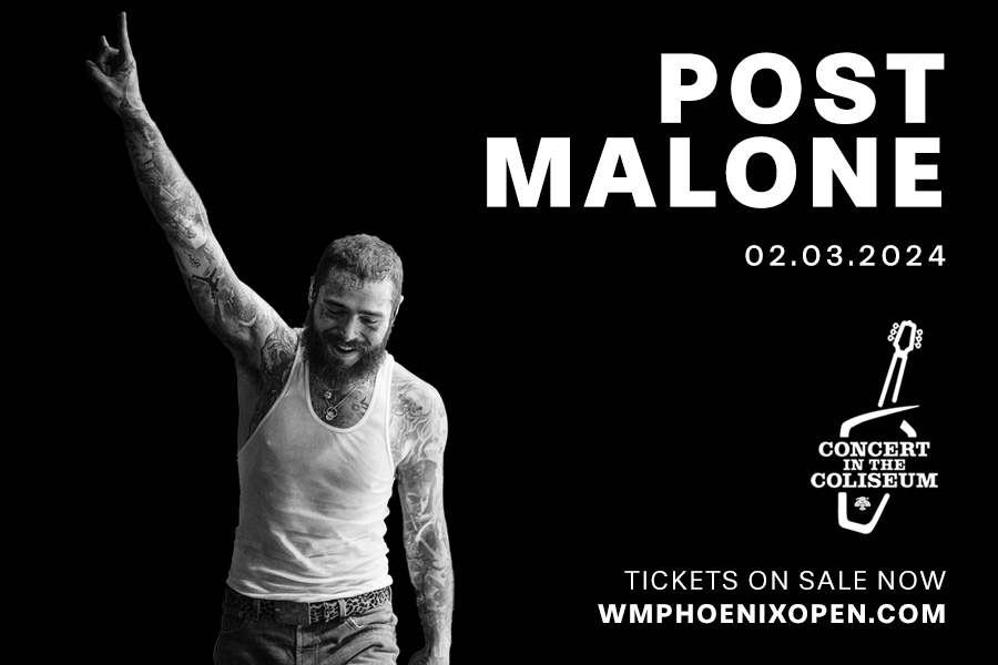 Post Malone will take center stage live from the iconic 16th hole at TPC Scottsdale for the 2024 edition of the Concert in the Coliseum presented by Swire Coca-Cola on Saturday, Feb. 3, just two days before WM Phoenix Open tournament week.
