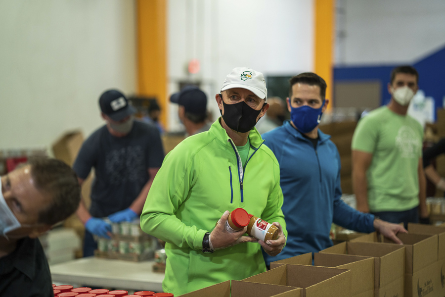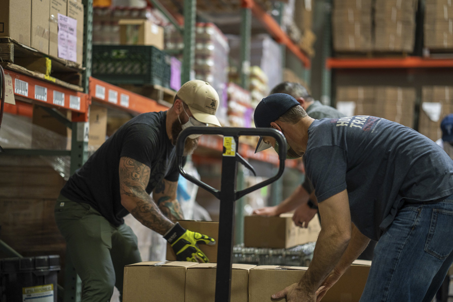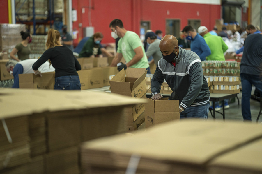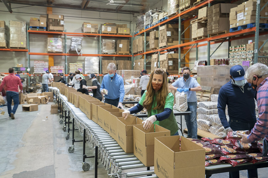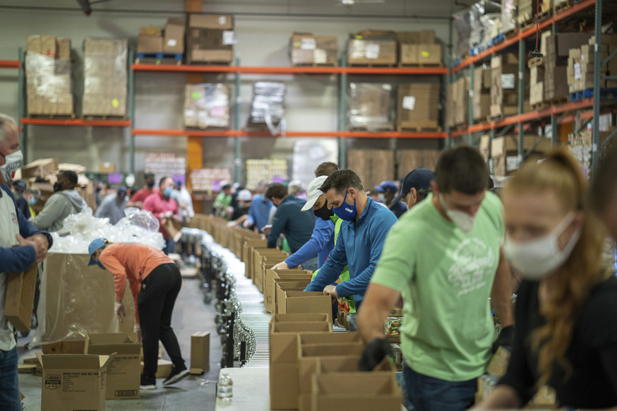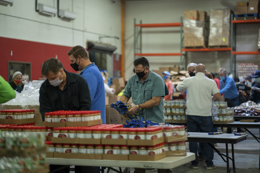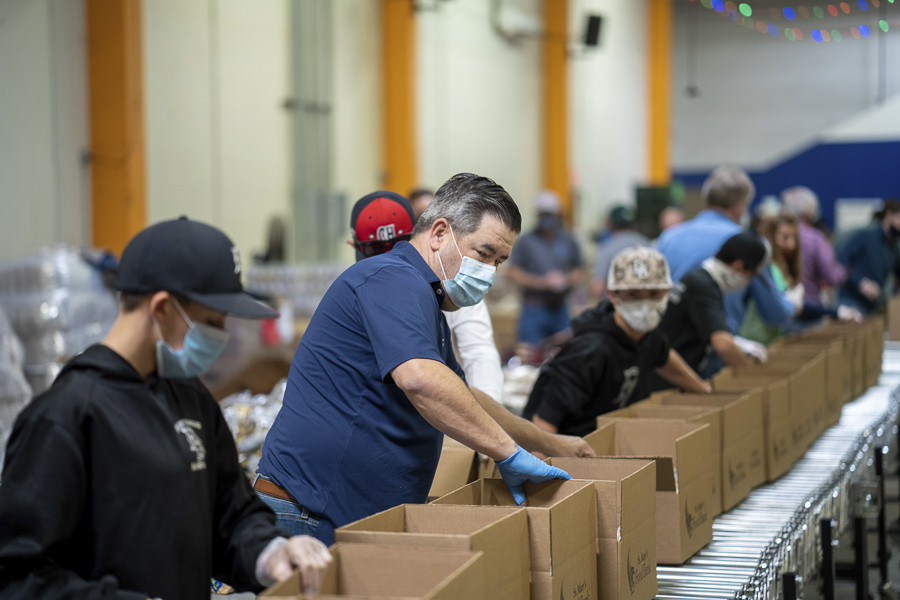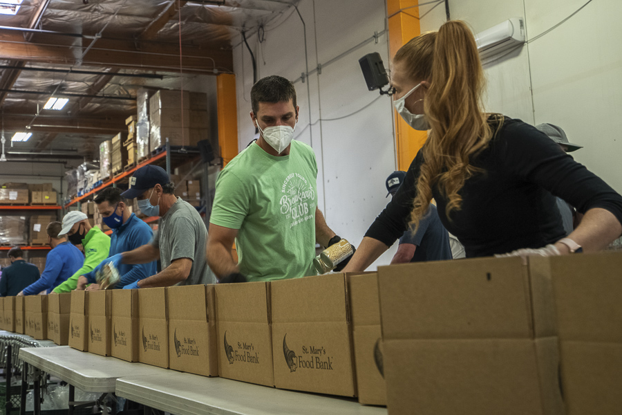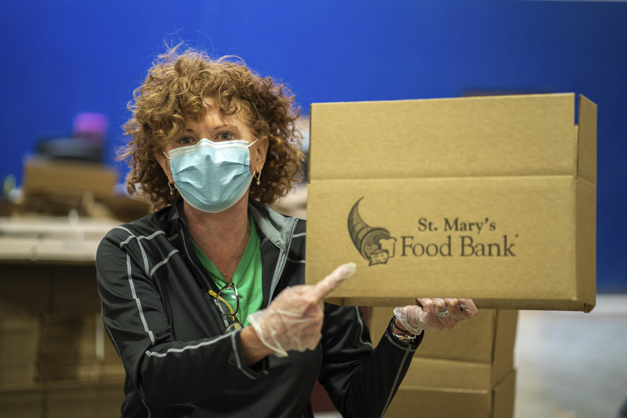Traditionally, Thanksgiving and Christmas are the biggest time of need for hungry families, and with the current health crisis, it’s been more difficult to find volunteers to help pack all of the food that comes into the St. Mary’s Food Bank warehouse through donations.